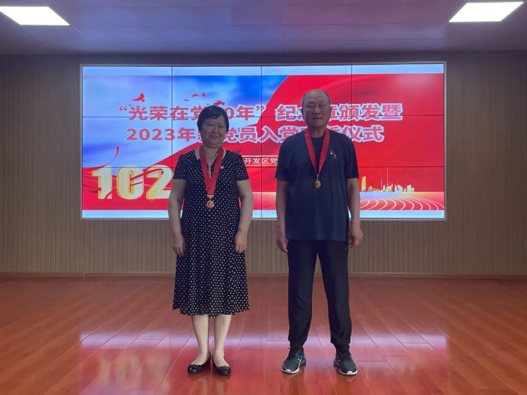 光荣在党五十年,薪火相传跟党走。6月28日,在中国共产党成立102周年之际,文登经济开发区党工委举行“光荣在党50年”纪念章颁发仪式,天润工业两名退休党员侯新芳、孙国凤获颁纪念奖章,侯新芳作为“光荣在党50年”党员代表作交流发言。
