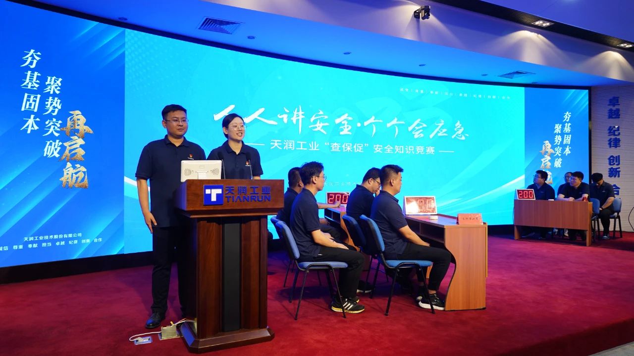 6月30日下午,为引导广大员工主动学习安全生产知识,熟练应用安全操作技能,提升广大员工对危险的辨别、反应能力和对突发事故的防范、处理能力,切实履行好岗位安全责任,结合“人人讲安全、个个会应急”安全月活动主题,天润工业安全生产月“查保促”安全知识竞赛决赛在公司七楼阶梯教室成功举行。副总经理林永涛、王旭阳,安全总监刘华等出席本次活动。