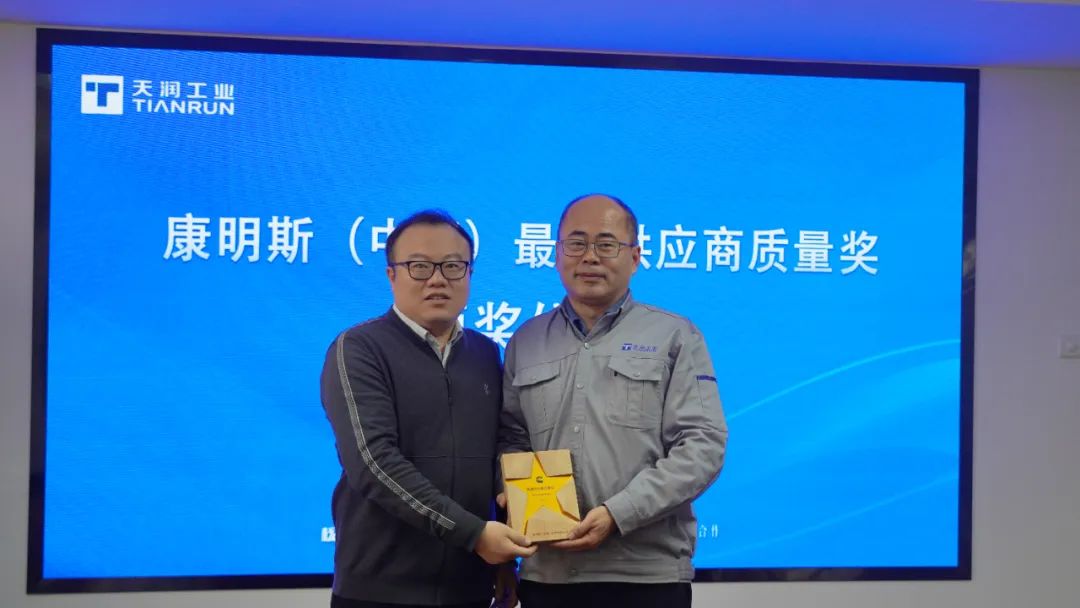 3月8日,康明斯平台供应商质量负责人陈慧升到访天润工业,为天润工业荣获康明斯(中国)“最佳供应商质量奖”进行现场颁奖,公司副总经理王旭阳代表公司接受颁奖。