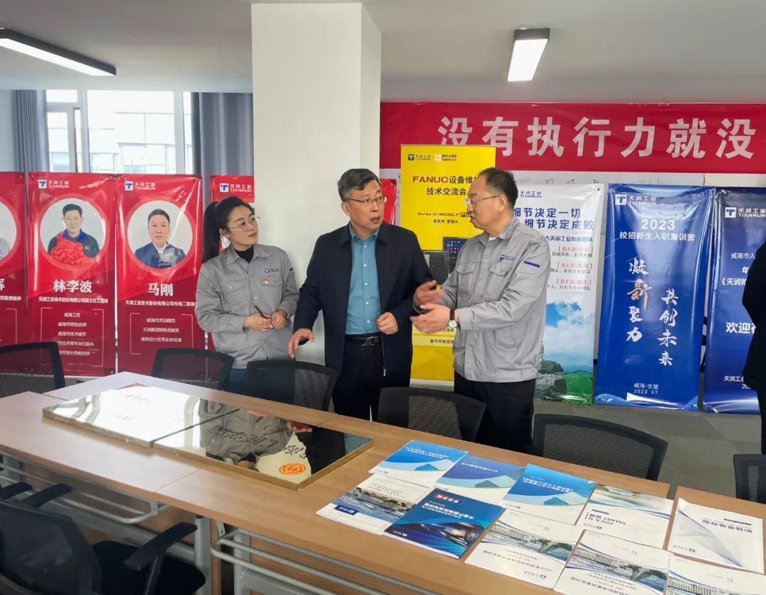 4月18日,威海市总工会副主席、党组成员王庆文,文登区总工会党组书记、常务副主席于春柏等一行8人亲临天润工业,就山东省级工匠学院申报工作展开深入调研与悉心指导。公司常务副总经理夏丽君,工会主席刘华等及工匠代表、工会委员成员全程陪同,共同探讨工匠人才培养之道。